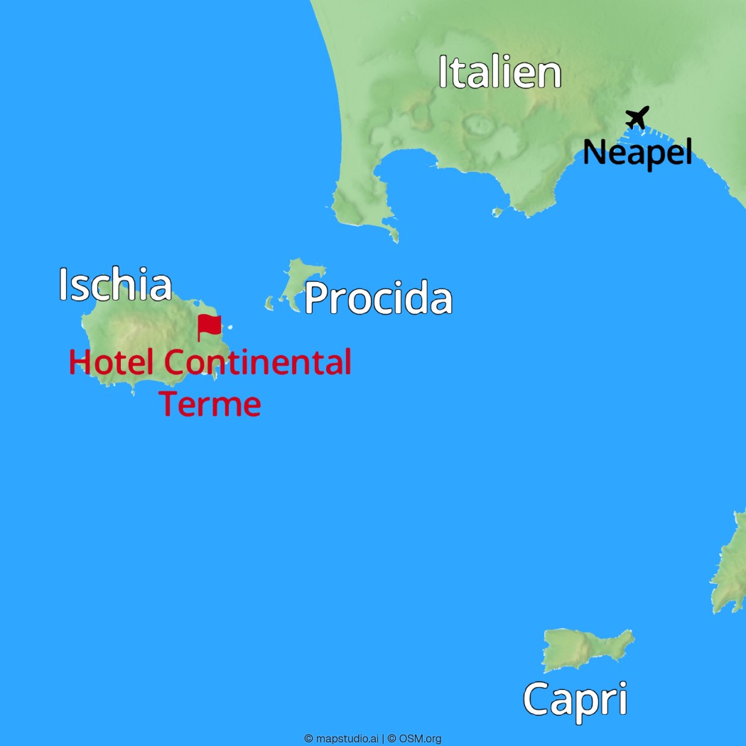 Flug von Deutschland nach Neapel. Empfang durch Ihre Deutsch sprechende Reiseleitung und Transfer zu Ihrem Hotel auf Ischia. Abendessen und Übernachtung im Hotel.